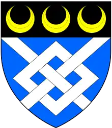 Arms of Hood Baronets (later Barons St Audries): Azure, a fret argent on a chief sable three crescents or,[1] being a difference of arms of Hood, Viscount Bridport, with tinctures of chief inverted