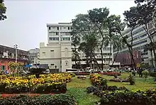 Mitford Hospital, one of the largest hospitals in Bangladesh, is located adjacent to the college campus. It occupies an oblong area of about 12.8 acres of land on the bank of Buriganga river.[15] The hospital complex comprises more than fourteen buildings, most of which were originally single-storied and later have been raised to multiple storeys. With gradual expansion since its initial foundation, the campus comprises a mix of buildings depicting both modern and colonial architecture.[15]
