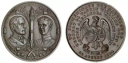Sir Herbert Williams-Wynn and Louisa Williams-Wynn. Copper Medal struck to celebrate their wedding in 1884. Courtesy Spink and Son Ltd.