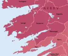 Petty gained possession of the three baronies of Iveragh, Glanarought and Dunkerron in County Kerry.[6] He soon became a projector, developing extensive plans for an ironworks and a fishery on his substantial estates in Kerry. Although he had great expectations of his application of his scientific methods to improvement, little came of these.[7] He began by applying his political arithmetic to his own estates, surveying the population and livestock to develop an understanding of the land's potential.[6] The ironworks was established in 1660.[8]