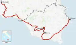 The Siracusa–Gela–Canicattì railway is a single-track line in Sicily, Italy managed by RFI. The route connects Syracuse on the Ionian side of Sicily to the Mediterranean side, crossing, with an east-west route, a number of large urban centers to Canicattì.[1][2][3]