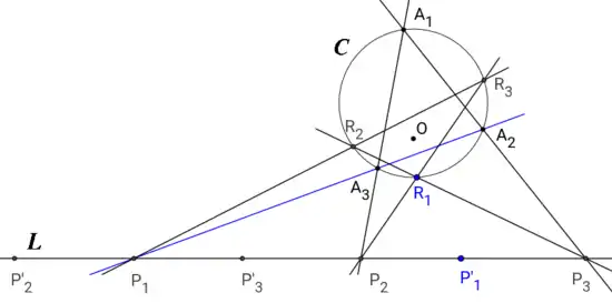 Such a projective apparatus makes it possible, given a point in the plane, to determine the lines that admit this point as orthopole. In the general case, there are four of them (including the line at infinity and the complex lines if any).