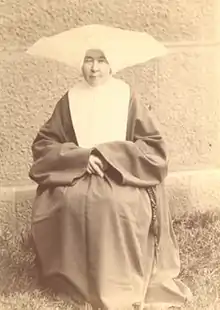 On 3 June 1848,[4] eight Sisters of Charity, Sisters Ursula Mattingly, Ann de Sales Farren, Hieronimo O'Brien, Anacaria Hoey, Clare McDurby, Mary Aloysia Lilly, Mary Eliza Dougherty, and Agatha O'Keefe,[5] arrived in Buffalo.[3] Bishop Timon had purchased an unused brick schoolhouse and adjoining cottage at Pearl Place, which he gave to the Sisters to use.[6] They outfitted it with 100 beds and living quarters for themselves.[3] On 1 October 1848, Sisters of Charity Hospital officially opened as Buffalo's first large healthcare facility, under the leadership of Sister Ursula Mattingly, DC.[4] The first patients were a group of six sailors.