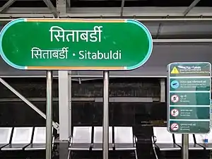 Sitabuldi is an elevated metro interchange station on the North-South corridor of the Orange Line and East-West corridor of the Aqua Line of Nagpur Metro in the city of Nagpur, Maharashtra, India which allows passengers to transfer between the Orange Line and the Aqua Line. It was opened to the public on 8 March 2019.[1] Aqua Line services commenced on 28 January 2020.[2] The station covers a total area of 250,000 square feet.[3]