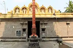 Most of the Chola temples built during the period of 866 and 1004 CE is associated with certain military events or political campaign. During 940 Parantaka I had frequent trouble from invading Rashtrakutas. Takkolam War, dubbed as the greatest war held in the Tamil region, was fought between Cholas and Rashtrakutas.[3] There was a military station in the region during the time of Parantaka, which was headed by his son Rajaditya Chola. The inscriptions from Kannara-deva (Rashtrakuta Krishna III), mentions the Kannaradeva defeating the Cholas and death of Rajaditya during the Takkolam war. Rajaditya was killed with a spear piercing him while he was seated on the elephant. The event gave him the name Anai-merrunjina-deva. The inscriptions from the period of Parantaka mentions that the temple was converted to a stone temple during the reign and the gift of lamps by Rajaditya (mentioned as Vellan Kumaran).[2] The temple has various inscriptions from the period of the Medieval Cholas like Aditya Chola, Rajendra Chola, and Kulothunga Chola and Pandyan kings like Sundarapandithevan and Veerpandithevan. There are other inscriptions from Rashtrakutas, Vijayanagar kings like Virupanna Udayar.[4] In modern times, the temple is administered by the Hindu Religious and Charitable Endowments Department of the Government of Tamil Nadu.[5]