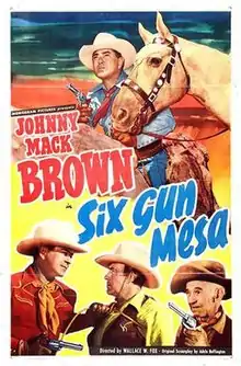 Six Gun Mesa is a 1950 American Western film directed by Wallace Fox and written by Adele Buffington. The film stars Johnny Mack Brown, Gail Davis, Riley Hill, Leonard Penn, Marshall Reed and Milburn Morante. The film was released on April 30, 1950, by Monogram Pictures.[1][2][3]