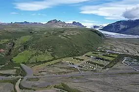 Aerial view of the campsite with Skaftafellsjökull in the background
