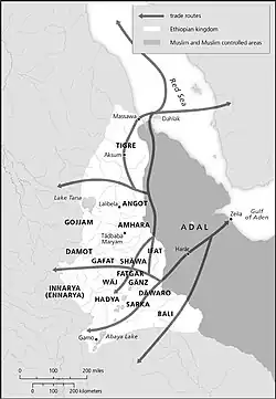 - ↑ Pankhurst, Richard (1982). History Of Ethiopian Towns. p. 58. ISBN 9783515032049.
