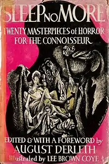 Sleep No More is an anthology of fantasy and horror stories edited by August Derleth and illustrated by Lee Brown Coye, the first of three similar books in the 1940s. It was first published by Rinehart & Company in 1944. Featuring short stories by H. P. Lovecraft, Robert E. Howard, Clark Ashton Smith and other noted authors of the macabre genre, many of the stories made their initial appearance in Weird Tales magazine. The anthology is considered to be a classic of the genre, and is the initial foray by Coye into the field of horror illustration.