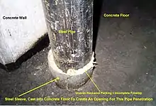 In construction, a sleeve is used both by the electrical and mechanical trades to create a penetration in a solid wall, ceilling or floor.