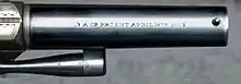 The Slocum, a unique design, was patented on January 27. 1863 (Patent No. 37 551). Later, on April 14, 1863, a patent covering a slight modification of the cartridge ejector system (Patent No. 38 204) and granted to Frank P. Slocum.[2] This circumvented the Rollin White “bored through cylinder” patent which belonged to Smith & Wesson.