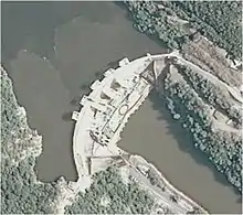 Smith Mountain Dam is a concrete arch dam located on the Roanoke River in Virginia, creating Smith Mountain Lake. The dam was built by Appalachian Power (a division of American Electric Power) between 1960 and 1963 for the purposes of pumped-storage hydroelectricity. The dam created Smith Mountain Lake as its reservoir, where recreation and real estate have become popular.[2][3]