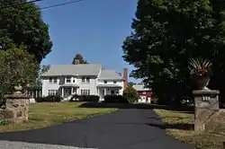The Smithfield Road Historic District is a rural historic district in North Smithfield, Rhode Island, along Old Smithfield Road (Rhode Island Route 146A). It extends along Old Smithfield Road north from its junction with Sayles Hill Road, and is roughly bisected by Spring Brook. It includes eight historic houses or farmsteads, two 19th-century cemeteries, and a dam (whose construction date is unknown) on Spring Brook just east of the road. The district encompasses a cross-section of the development of agricultural properties in North Smithfield over the 19th century, with properties dating from 1811 (1034 Old Smithfield Road) to 1932 (1172 Old Smithfield Road). The district covers 170 acres (69 ha), which includes lands currently and formerly in agricultural use.[2]