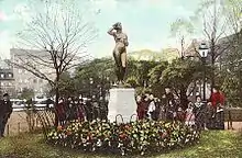 The work became very popular in both public and private contexts, leading to high demand for replicas and full-size and smaller reproductions. It was cast in bronze for Stockholm's Mariatorget, the city's first non-honorific public statue - it was funded by director CR Lamm at Ludvigsberg and inaugurated in November 1900.