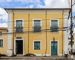 Sobrado at No. 2 Rua Ana Nery (Portuguese: Sobrado à Rua Ana Nery Nº 2 is a Portuguese-colonial era sobrado, or urban manor house, in Cachoeira, Bahia, Brazil. It was constructed in the early 18th century by a wealthy family, and has a privileged location in the town: it is a corner sobrado; opens to Praça Aclamação, the historic public square; and has views of the Town Hall of Cachoeira, the House of Prayer of the Carmelite Third Order, and the Church of Our Lady of Mount Carmel. The sobrado covers 680 square metres (7,300 sq ft) and consists of two levels and a small attic (mezanino).[1] It was listed as a historic structure by the National Institute of Historic and Artistic Heritage in 1943. The Sobrado at No. 2 Rua Ana Nery houses two town government offices: the Secretary of Tourism on the ground floor, and the Secretary of Education of Cachoeira on the upper floor.[2][3][4]