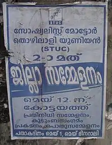 Socialist Trade Union Centre is a trade union federation in Kerala, India. It was started in 2003 by the Sree Narayana Dharma Paripalana, an Ezhava caste-based movement. Its first affiliated union was the Socialist Motor Thozhilali Union, a union of autorickshaw drivers in Kottayam.[1]