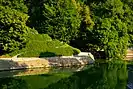 To the east of the statue of Cupid on the left side are the granite steps that lead to the grottoes Loketek and Nut. They are created on the first period of construction of the Sofiyivsky park in Ukraine.