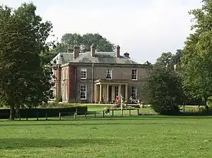 John Hutton (1794–1857) built Solberge Hall in 1824. He was born in 1794 in Newby Wiske. His father was Robert Hutton and his mother was Margaret Squire. The Hutton family had purchased Sober Gate which is adjacent to Solberge Hall in 1684 and had lived there since then.[1] In 1812 when John was only eight years old, his father died, leaving him and his sister Margaret in the care of their mother at Sober Gate. John inherited this property when he came of age, and in 1821 he bought Solberge Manor from George Osbaldeston, the famous cricketer.[2] In 1824, he built Solberge Hall, which for many years was called Sowber Hill. John lived with his sister Margaret for some years, until she died in 1833 at the age of 36. He erected a very elaborate memorial to her in St Michael’s and All Angels Church in North Otterington, which can be seen today. It was considered to be a very artistic work and the British Museum still holds an illustration of the monument.[3]