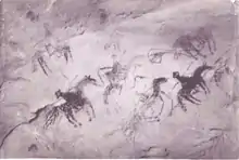 Possible Navajo charcoal cave drawing of soldados de cuera, date of drawing unknown