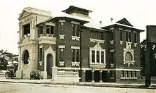 The Ipswich Soldiers' Memorial Hall is a three-storey brick building opened in 1921. It was designed by George Brockwell Gill and built by F.J. Lye. Brickwork was by A. Mansfield, plastering J. Jamieson and joinery Arthur Foote Ltd.[1]