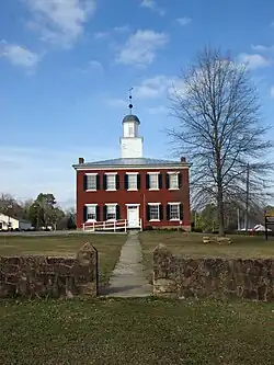 The Somerville Courthouse is a historic building in Somerville, Alabama. The oldest extant courthouse in Alabama, it was built in 1837 as the second courthouse for Morgan County. It served until 1891, when the county seat was moved to the larger Decatur. The building was later used as a school and town hall. The courthouse is two stories and constructed of brick, with large, eight-over-eight sash windows on each façade and the sides. The hipped roof is topped with an octagonal cupola with a wooden base and topped with a finial. Two interior chimneys pierce the roof on each side.[2] The courthouse was listed on the National Register of Historic Places in 1972.[1]
