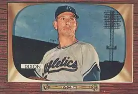 On May 11, 1955, Dixon and cash were sent by the Athletics, in their first year in Kansas City, to the New York Yankees in exchange for a couple of well-known veteran players: pitcher Johnny Sain and eventual Hall of Famer outfielder Enos Slaughter.[4] He had appeared in only two games for the 1955 A's, and was sent to the Triple-A Denver Bears upon his acquisition by the Yanks. After an effective 1956 season in Triple-A, Dixon received his final big-league trial as a September call-up by the pennant-bound 1956 Yankees, and he was effective in three relief appearances. He then pitched exclusively in the minors through 1961, when he concluded an 18-year pro career.