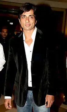 Sonu Sood (born 30 July 1976)[2][3] is an Indian actor, film producer, model, humanitarian, and philanthropist who works predominantly in Hindi, Telugu, Tamil and Kannada films. He is known for his performances as the negative lead in most of his films and is also known for his humanitarian work specially during the COVID-19 Pandemic.