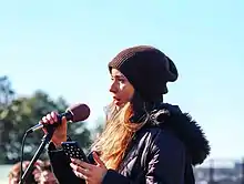 In November 2019, Kianni skipped school to join a group of protesters organized by Extinction Rebellion who intended to stage a week-long hunger strike and sit-in at the Washington, D.C., office of Speaker of the House Nancy Pelosi, demanding that she speak with them for an hour on camera about climate change.[7] Locally, there were roughly a dozen participants; at 17 years old, Kianni was the youngest, and one of two women.[2][8] Kianni was not a member of XR, and only participated in the first day of the sit-in, but gave a prepared speech and interviews to the press, and continued the hunger strike remotely.[2][9] Kianni wrote about her participation in the protest for Teen Vogue,[4] and in 2020 acted as an Extinction Rebellion spokesperson.[10][11]
