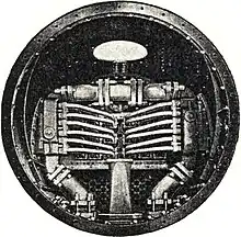 Each of the eighteen 5+1⁄4 inches (133 millimetres) diameter boiler flues contained four lengths of seamless steam pipes of 1+1⁄2 inches (38 millimetres) outside diameter, arranged in double pairs which were connected at the back ends by return bends and with the two pairs connected to each other at the front by another return bend. This forced the steam to traverse the entire four pipe lengths before entering the steam chests. The two free front ends of each such foursome of pipes were bent around to meet the steam headers. This design of superheater produced a superheat of from 175 to 250 degrees Fahrenheit (79 to 121 degrees Celsius) above saturation temperature.[7]