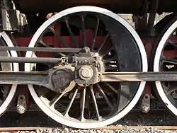 The main bar frames were machined from rolled steel slabs and each frame was in one piece from the front to the hind buffer beam. The wheels were fitted with hollow crank pins, while the leading bogie was fitted with an oil bath centre pivot. The connecting and coupling rods were fitted with floating bronze bushes and were made of special chrome-nickel alloy steel of fluted section. The centre driving set of coupled wheels were flangeless and had wider treads than the other two sets to prevent them from slipping off the rails in sharp curves.[2]