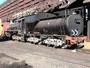 They were built with Watson Standard no. 1 boilers, while their double hopper type ashpans were specially designed to clear the four-wheeled trailing bogies. Their specially designed Type MY tenders were similar in appearance to the Type MX and the North American Vanderbilt type tenders, with cylindrical water tanks. The tenders rode on three-axle Buckeye bogies to reduce the axle load and, along with the Type MX, became commonly known as Torpedo tenders.[1][2][3][6][7]