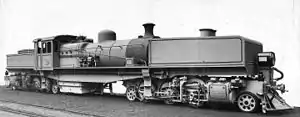 The first Modified Fairlie was introduced in South Africa and was viewed as a competitor and alternative to the Garratt type. Colonel Collins displayed a distinct preference for articulated locomotives and the Modified Fairlie was acquired as an experimental locomotive in 1925 to compare its concept to that of the Garratt locomotive in terms of actual performance and maintenance requirements.[1][2][3]
