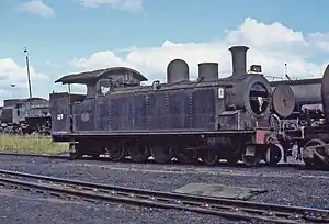 The requirement for a tank locomotive which could haul at least one-and-a-half times as much as a Dübs A 4-8-2T locomotive on the mainline of the Natal Government Railways (NGR) resulted in the design of a 4-10-2 tank locomotive by NGR Locomotive Superintendent G.W. Reid. Altogether 101 of these locomotives were built by Dübs and Company and North British Locomotive Company, delivered between 1899 and 1903 and numbered in the range from 149 to 249.[1][3][4]