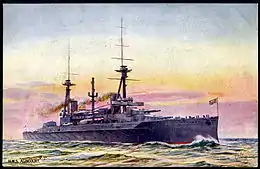 Other South American navies, having limited resources and little expertise in operating large warships, were in no state to respond. The Peruvian Navy, fourth largest on the continent, had been decimated during the Naval campaign of the War of the Pacific against Chile (1879–83). It took the Peruvian government more than twenty years to order new warships—the Almirante Grau class (Almirante Grau and Coronel Bolognesi), scout cruisers delivered in 1906 and 1907. They were augmented by two submarines and a destroyer ordered from France.[80] Almirante Grau was intended to be the fleet's flagship only until a more powerful warship was purchased; along with Coronel Bolognesi, they were to be the "pioneers" of a modern navy.[81] Proceedings reported in 1905 that this new navy would be composed of three Swiftsure-like pre-dreadnoughts, three armored cruisers, six destroyers, and numerous smaller warships, all acquired as part of a nine-year, $7 million outlay.[82]