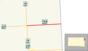 South Dakota Highway 158 (SD 158) is a 9.150-mile-long (14.725 km) state highway in Vernon Township, Grant County, South Dakota, United States. It travels from an intersection with SD 15 and SD 20 to the Minnesota state line, where it continues as County State-Aid Highway 44 (CSAH 44) in Lac qui Parle County.