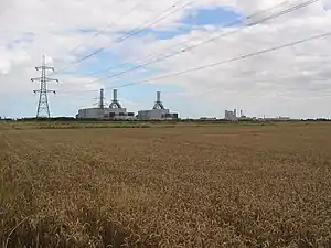 South Humber Bank Power Station is a 1,365 MW gas-fired power station on South Marsh Road at Stallingborough in North East Lincolnshire north of Healing and the A180 near the South Marsh Road Industrial Estate. It is around two miles east of Immingham, and employs 64 people. The site of SHBPS is around 500 metres by 400 metres in area (around 54 acres). It is next door to the Synthomer plant.[1]