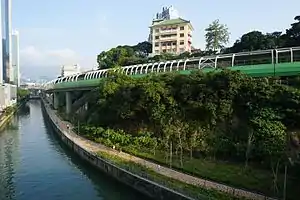 The South Island line (Chinese: 南港島綫), identified by light green on the MTR route map, is a rapid transit line of Hong Kong's MTR metro system. This line connects the HK business district from Admiralty station to the Southern District of Hong Kong Island and the island of Ap Lei Chau, which was not served by any rail transport prior to the opening of this line.[2] The rolling stock of South Island line is purpose-built for driverless operation. Trains are remotely controlled from the Operations Control Centre in Tsing Yi. Approved by the Executive Council in 2007,[3] the line commenced service on 28 December 2016.[4]