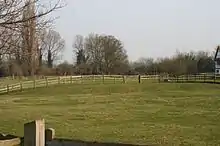 South Moreton Castle is an 11th-century Norman motte and bailey design that overlooks Mill Brook in the village of South Moreton, lying close to the village church.[1] The motte is 50 metres (160 ft) wide and 4 metres (13 ft) high, surrounded by a 15-metre-wide (49 ft) ditch that may have originally been filled with water.[1] and is partly filled most winters. The motte was damaged during the late Victorian period, and a 50-yard-long (46 m) embankment stretching away from the castle to the west may have been destroyed around that time.[2] Local tradition states that some victims of the English Civil War in the 17th century were buried upon the motte.[2] The castle is a scheduled monument.[3]