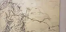 South Pass (elevation 7,412 ft (2,259 m) and 7,550 ft (2,300 m)) is a route across the Continental Divide, in the Rocky Mountains in southwestern Wyoming. It lies in a broad high region, 35 miles (56 km) wide, between the nearly 14,000 ft (4,300 m) Wind River Range to the north and the over 8,500 ft (2,600 m) Oregon Buttes[3] and arid, saline near-impassable Great Divide Basin to the south. The Pass lies in southwestern Fremont County, approximately 35 miles (56 km) SSW of Lander.