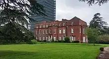 A full-height extension exists to the left-hand side of the building (looking at the north front), and the attic storey was extended by one bay on each side after this full-height extension was built. The building is now flanked by two modern wings.[6]