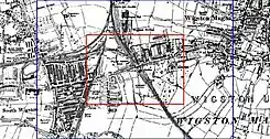 The 1886 Ordnance Survey Map shows the beginnings of the settlement. The brickworks are the largest single premises west of Saffron Road. Blaby Road is the most developed road with three terraces of properties along the south side; one of 25 properties to the east of Countesthorpe Road, one of 18 to the east of Dunton Street and a smaller terrace from the corner of Canal Street to the level crossing and South Wigston station. On the north side of Blaby Road, the only buildings were four terraced properties to the west of Station Street.