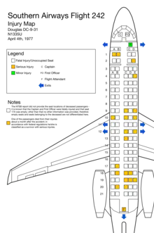 - 1 2 The NTSB's final report lists a total of 70 fatalities from the crash of Flight 242, including 2 flight crew, 60 passengers, and 7 persons on the ground. However, two other persons (one passenger and one person on the ground) died about one month after the accident. In its final report, the NTSB explained that at the time, 49 CFR 830.2 required it to only identify persons who died within 7 days of an accident as having "fatal" injuries. In accordance with the regulation, the NTSB did not list these two deceased persons as fatalities, instead counting them as "serious" injuries.[1]: 7