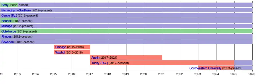 - ↑ "SAA announces that Southwestern University will join the league as an affiliate member in football". August 19, 2021. Retrieved August 19, 2021.