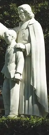 A statue that stands on the front lawn of the college. An inscription at the foot reads "I have no hands, but yours". Ironically both people portrayed in the statue were missing a hand, until early May 2019 when the hands were re-sculpted and replaced