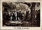"Kentucky: The Hanging of Mr. Carey""Feb. 19...the Journal's special correspondence says that a mob, composed of the remains of Quantrell's guerrillas, broke open Mr. Carey's house at Parkesville, and seized and hung Mr. Carey. He had been tried for stealing a horse to escape from the rebels at the battle of Perrysville."