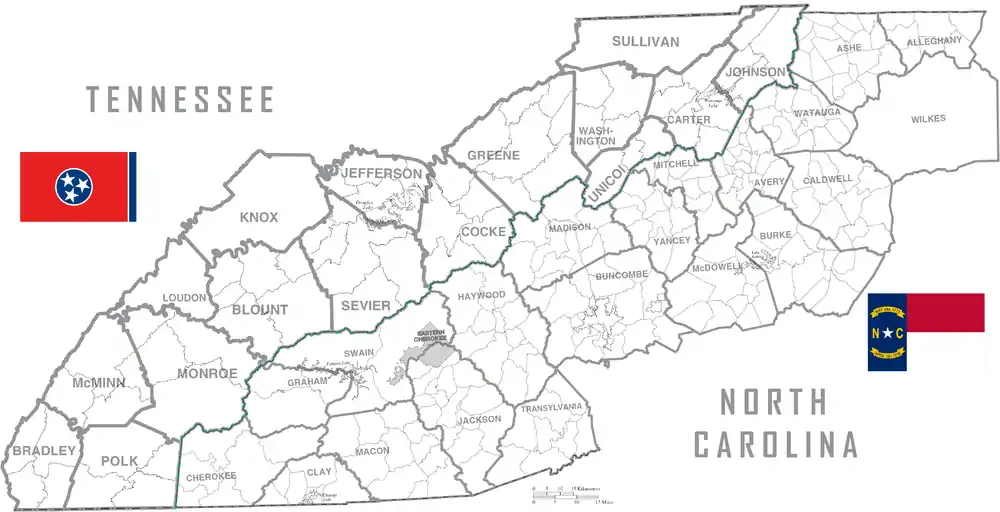 Most of these mountains are located in the Great Smoky Mountains National Park (abbreviated GSMNP in the list), Mount Mitchell State Park (MMSP), along the Blue Ridge Parkway (BRP), or in the Cherokee or Pisgah National Forest. There are a few, though, that are located on private property. All of these mountains are located within 32 miles (51 km) of the North Carolina - Tennessee border,[1] with 12 on the state border itself and many more on various county borders.