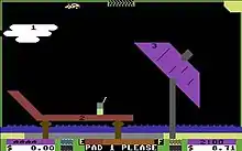 Space Taxi is an action game for the Commodore 64 written by John Kutcher and published by Muse Software in 1984.[1] It simulates a flying taxi controlled by thrusters. The game uses sampled speech, including "Hey taxi!", "Pad one please", "Thanks", and "Up please". These are said in a variety of voice pitches, creating the feeling of different taxi customers.