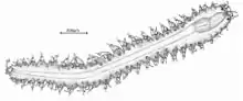 The animal counts with 25 chaetigers over a length of 1.9 millimetres (0.075 in) with palps but without anal cirri. Its width at its sixth chaetiger is 250µm without parapodia. It has a small and thin body, widest at its proventricle. It shows irregular dorsal papillation on its anterior chaetigers, while its ventrum does not show papillation. Its prostomium is wider than long, with 4 coalescent lensed eyes arranged trapezoidally; anterior eyespots are absent. It counts with pyriform antennae with bulbous bases and elongated tips, its median antenna measuring 40 µm long, while lateral ones measure 33 µm, which is longer than its prostomium and palps together. Its median antenna is inserted between its anterior pair of eyes, the lateral ones attached on the anterior margin of its prostomium. The animal's palps are ventrally-directed, fused along their length and with a dorsal notch and few small papillae.[1]