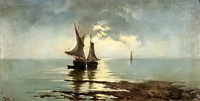 In 1907, he moved to Smyrna, where he taught drawing and painting at the newly founded "Scuola D'Ivrea Centrale"; operated by an order of Italian Catholic nuns. Eventually, he became a manager there. He was forced to leave during the Turkish War of Independence; taking his family to Rome, where he once again became an art teacher. He remained there until his death in 1927.