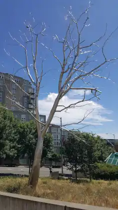The sculpture is a life-sized steel representation of a tree without any leaves. Naturally, birds such as crows can be seen occasionally resting on the branches.[3] It was built in a way that the two main branches diverge in direction, making it look more natural. It is approximately 15.24 m (50 ft) tall.[4]